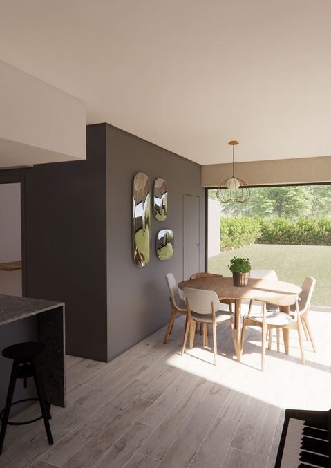 Le projet vise la construction d'une annexe en panneaux noir et à toiture plate.