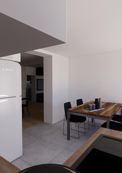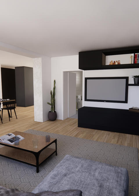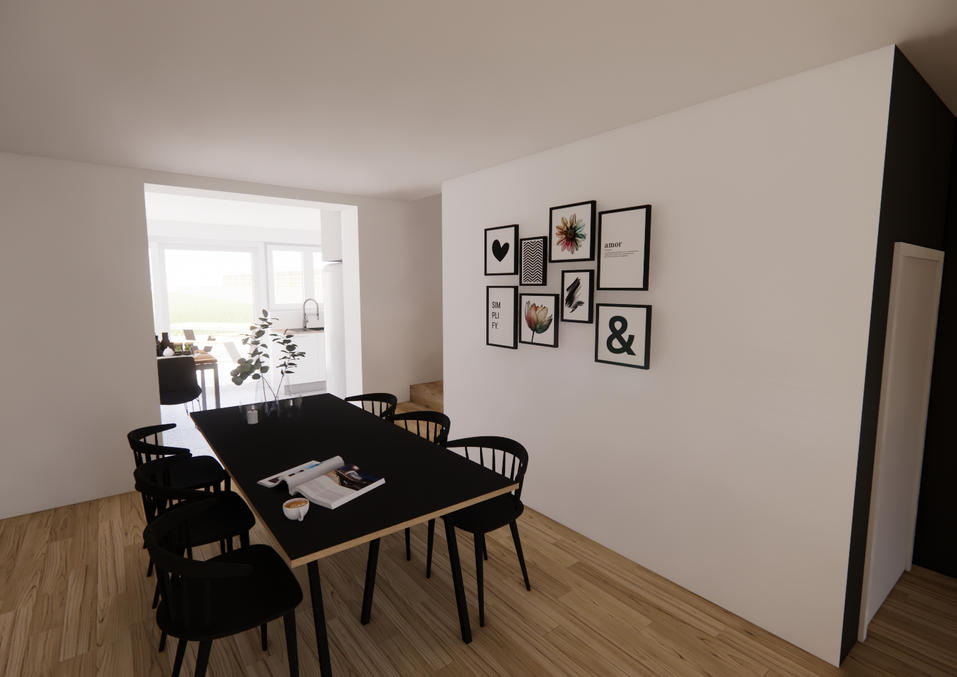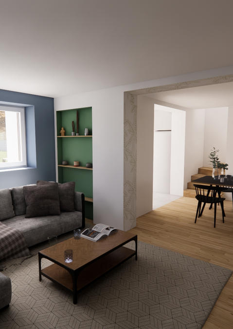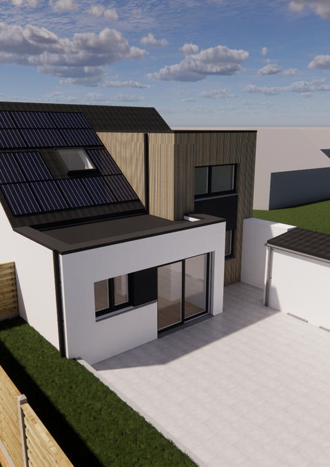 Ce projet d’agrandissement vise à moderniser et optimiser la maison existante. Le rez-de-chaussée a été étendu pour offrir des espaces lumineux et fonctionnels. De larges baies vitrées s’ouvrent sur une terrasse dallée et un jardin clos, créant une belle interaction entre intérieur et extérieur.